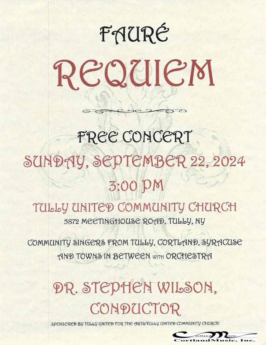 Cortland Music, Inc. is an artistic and cultural organization that promotes the performance and appreciation of music for the benefit of the general public with an emphasis on classical, international and other styles that are under-represented in the community. It designs and implements balanced music programs that provide opportunities for performers at many skill levels, from students through experienced professionals.